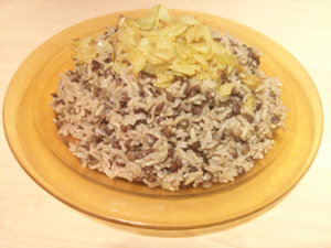 – Mettre dans un plat le riz et les lentilles, et par dessus les oignons frits.
